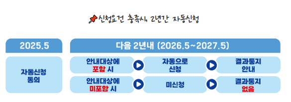 자동신청제도전면 확대해 신청 안내를 받은 모든 가구가 자동신청에 동의할 수 있게 되었습니다.