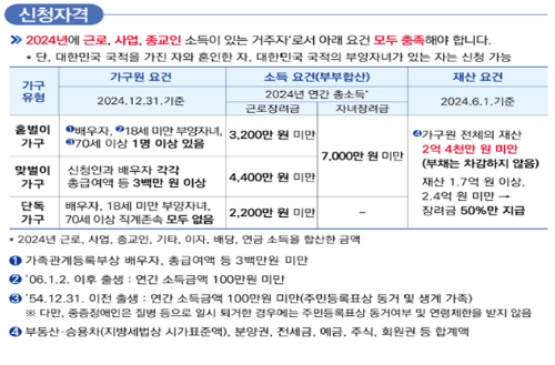 가구원 전체의 재산2억 4천만 원 미만이어야 합니다.