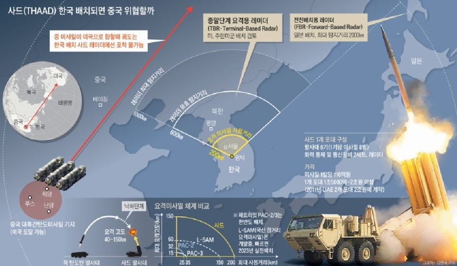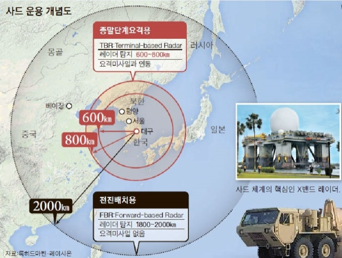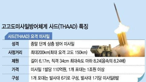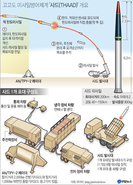 사드는 미국 록히드 마틴이 개발한 고고도 미사일 방어체계로,