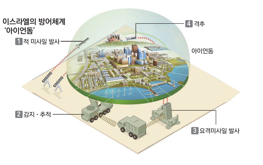 아이언 돔은 이스라엘이 개발한 단거리 미사일 방어 체계입니다.