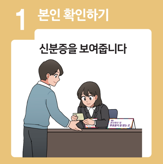 투표소에 줄을 선 뒤 신분증으로 본인 확인을 하고