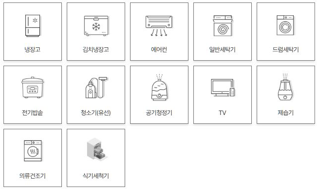 지원 품목은 냉장고, 에어컨, 세탁기, 공기청정기 등 총 11종입니다.