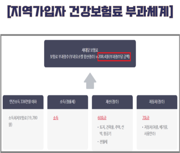 건보료 산정 시 재산(부동산, 차량 등)이 반영되기 때문입니다.