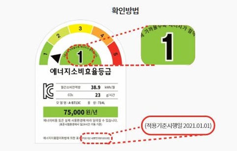 제품명과 모델명이 확인 가능한 1등급 인증 제품이어야 합니다.