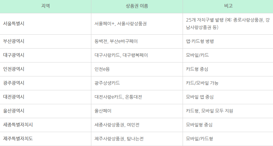 | 사용처 | 전통시장, 식당, 병원, 학원 등 |
