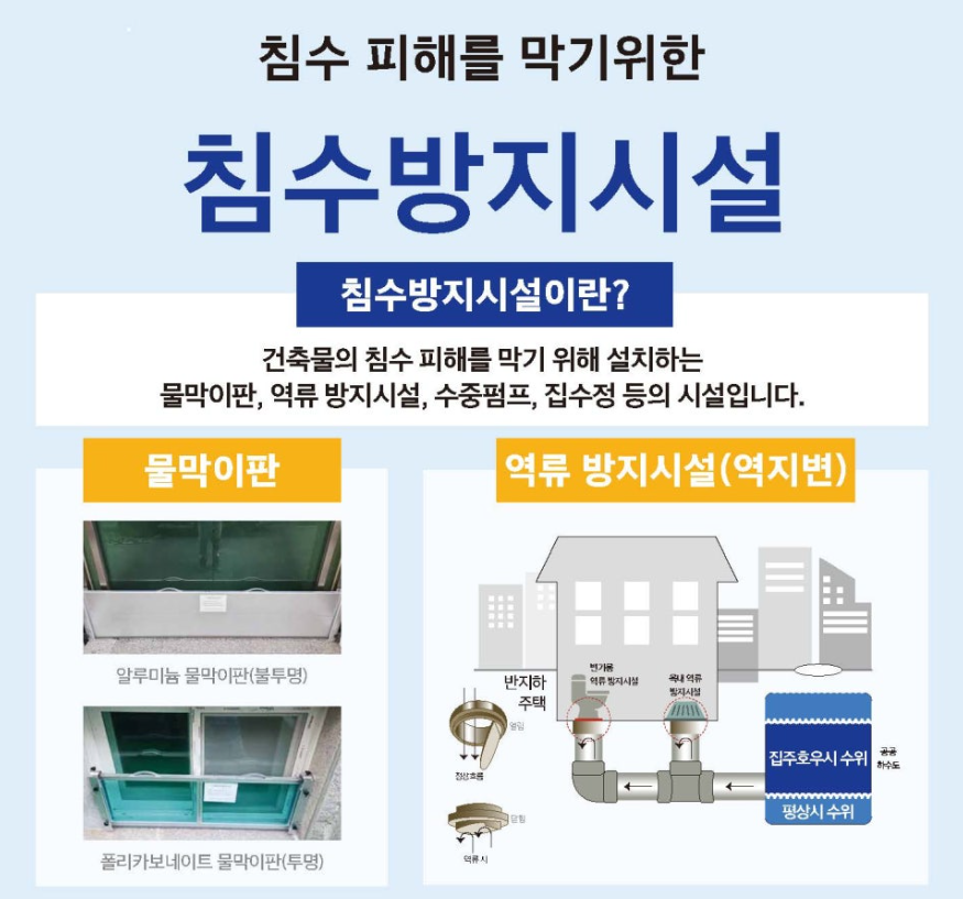 | 지하주차장 차량 대피 | 미리 고지대 주차 / 역류 가능성 체크 |