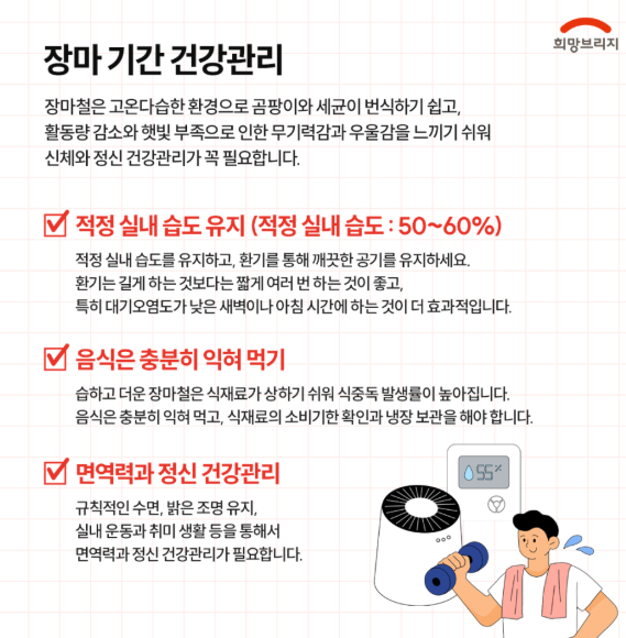 장마철 침수 위험, 감염병, 실내 환경 문제까지 전방위적으로 점검하고 대비하세요.