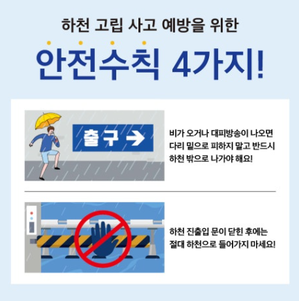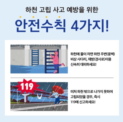- 👉 비가 오거나 대피 방송이 나올 경우 다리 밑은 절대 피하지 말고 하천 밖으로 이동