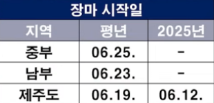 기상청 발표에 따르면 올해 장마는 6월 12일 제주도를 시작으로,