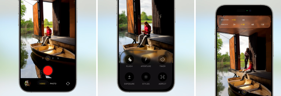 UI가 투명 블러 스타일로 바뀌었고, 촬영 모드 전환 버튼이 하단에 배치되어 조작성이 대폭 향상됐습니다.